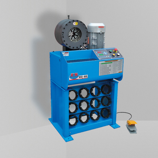 KM-91型系列縮管機(jī),公司技術(shù)人員針對環(huán)形機(jī)加潤滑油不方便這一情況,在機(jī)頭上設(shè)計(jì)增加了自潤滑油杯,模座上增加了油槽,模座間增加了彈性樹脂層,防止接頭上的鋅層脫落劃傷工作錐面和缸筒,考慮到現(xiàn)在扣壓時(shí)異型接頭較多這一現(xiàn)象,增加了機(jī)器的收擴(kuò)量和通過能力。新型機(jī)頭支架的選用改變了機(jī)頭和支架長期焊接導(dǎo)致缸筒變形等一系列弊端。